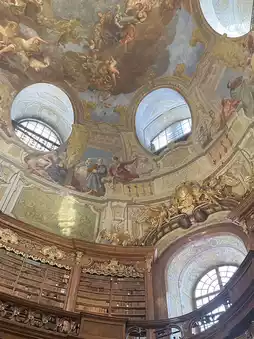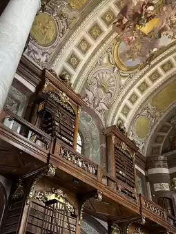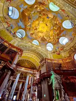 The opulent interior feels more like an art museum than a library, with stunning ceiling frescoes and intricate sculptures that captivate visitors.