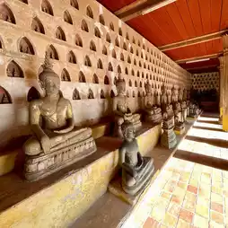 The temple complex encompasses a serene courtyard, stupas, and ornate structures adorned with intricate carvings and vibrant frescoes. What sets Wat Sisaket apart is its collection of thousands of Buddha statues, made from diverse materials such as wood, stone, and bronze. These statues, dating back to the 16th century, provide a captivating glimpse into the region's religious and artistic evolution.