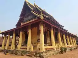 Outside the church, the roof structure is still the same. With red edges Inside the temple There are many tourists. Because it is an important temple in Laos, the temple is clean, there are signs telling the story of the temple's history.