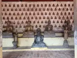 The outer hall has many Buddha images lined up. There are niches in the hall walls and small Buddha images. Information from the guide who brought tourists said that this temple used to have a hundred thousand Buddha images.
