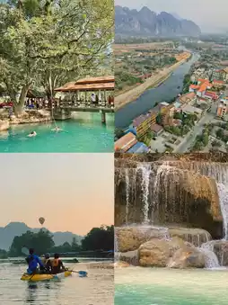 🌟🌟🌟Must-experience in Vang Vieng: The pristine nature of Vang Vieng, if you like the outdoors, you can stay a few more days. Kayaking, tubing, cave exploration, hot air ballooning, and the lagoon are just some of the many activities available, and they are very cost-effective~