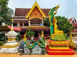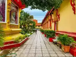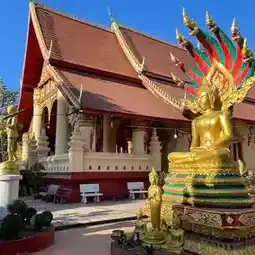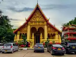This temple, named Wat Chan, is located in the heart of the tourist area. Situated along the Mekong River, it is surrounded by spacious grounds and beautiful scenery, offering visitors a tranquil and peaceful atmosphere. However, as evening falls, the place takes on a special charm with the sunset, and it becomes a parking spot for visitors' vehicles during the evening hours. This temple, along with nearby attractions, will be an excellent choice for visitors looking for rest and cultural experiences in Vientiane.