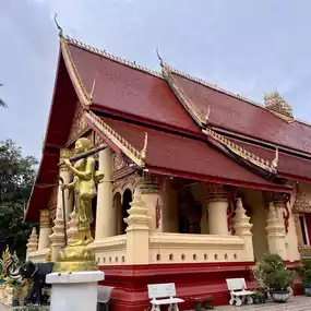 The main sim (chapel) houses a impressive reclining Buddha statue, while the peaceful grounds are dotted with smaller shrines, stupas, and tranquil garden areas. It's the perfect spot to escape the bustling city and immerse yourself in Lao Buddhist culture. 🕰️