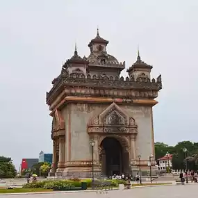 💢 Patuxai or Patuxai stands tall in the heart of Vientiane, Laos. It is an elegant monument built to honor the brave heroes who fought for independence from France. Although its exterior looks similar to the Arc de Triomphe in Paris, Patuxai is unique with its exquisite Lan Xang art, impressively carved with stories from Lao legends and culture. Tourists can go up to the top floor to see the beautiful scenery of Vientiane, making Patuxai another place not to be missed when visiting Laos.