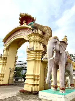 Wat That Phoun is a Buddhist temple located in Vientiane, Laos, near the Patuxai Monument along Nongbone Road. This serene temple is known for its distinctive entrance gate adorned with a Naga (mythical serpent) motif, beneath which sits a Buddha statue. Above the Buddha, a seven-pronged Naga canopy spreads protectively, symbolizing spiritual guardianship