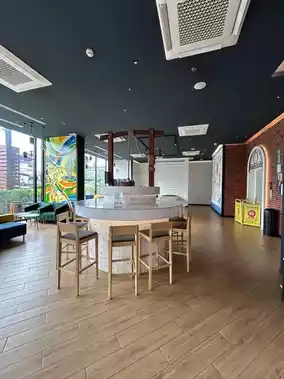 On the 8th floor, there is a laundry room. You can exchange coins at the front desk and there is a swimming pool.