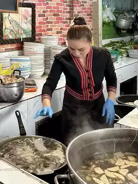 🧩 Highlights: Cheap, lots of portions, the largest bowl (for 5-6 people), good beef, cooked just right (the texture is chewy, you have to chew it), the beef broth is fragrant and sweet, and rich, with side vegetables, and free jaew dip for vegetables.