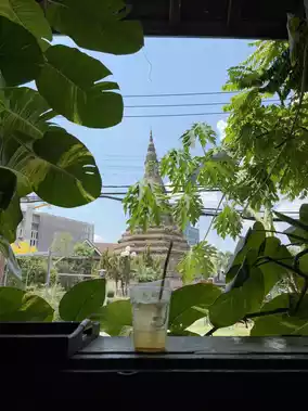 Drinks aren't overly expensive, similar to cafes in Thailand. However, there's no air-conditioned area. We came in the afternoon, and it was very hot. For a cool evening, we had to sit indoors. #Travelers #VientianeCafe #VientianeAttractions #VientianeTravel #Vientiane