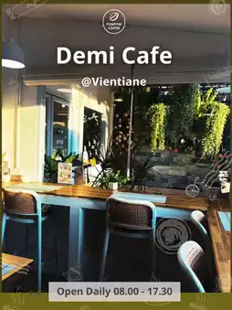 If you're visiting Vientiane and visiting the Patuxai, Demi Cafe is a must-visit. Delicious drinks, a variety of cakes, and a great atmosphere make it a great place for friends, families, or couples.