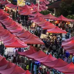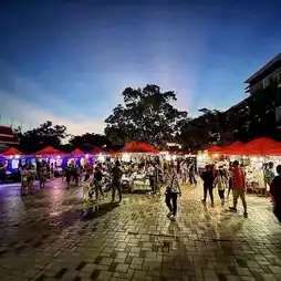 The market usually gets going around sunset and you can come here to buy a range of items like clothes, textiles, accessories, handicrafts, paintings and myriad souvenirs.