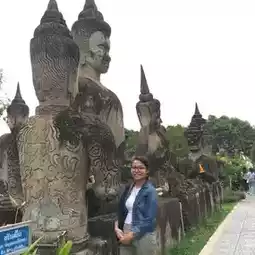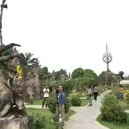 Laos Buddha Park located in Vientiane. This park you have to buy ticket to enter. It contain various religion status. Each of stutus contain their uniqueness. Here it has also Hindu statues.