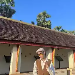 As the sun sets, the orange light from the sun shines on the pagoda, making it stand out and beautiful. Dressed in a retro style, it really fits the atmosphere.