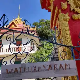 "Wat Mixai" is located in the middle of the tourist area of Vientiane. Perhaps because of this, it is the drop-off point for buses from Vang Vieng. Even though it is in the center, you will occasionally pass people and cars while walking from the hotel. At the end of such a peaceful place is "Wat Mixai". Although it is small, the front gate is surprising! The flashy colors of red and gold, but if you look closely, you can see that it is well-calculated. There are many orange pillars in the main hall, which is a bit like the Parthenon. As usual, I was able to take my time to look around at it by myself😊