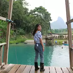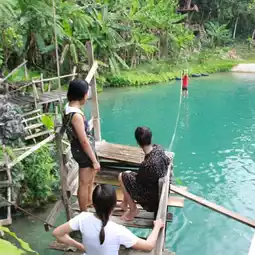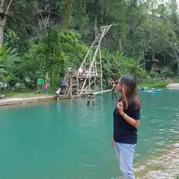 When we in a very beautiful place in Lao. Most of the place here are high range of the mountain. Laos known as having a beautiful Lake color. To come and play the water here it is free. When we go to this place there are many games for you to play if you are not scared. Most of the tourism here are Korean. The water that you see it blue like a sea and it is very cold.