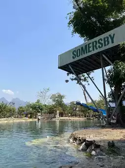 When you enter, there will be many seating areas for you to choose from, such as pavilions and sunbathing areas. The center area is a beautiful blue natural pool. The highlight is the jumping point. Test your courage here. There is also a slide on the side for us to play. For those who don't want to get wet all over, you can sit and soak your feet here.