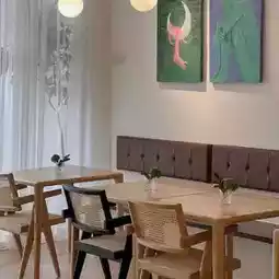 The shop is gentle, comfortable and private, white tones and warm yellow lights create a comfortable feeling like being at home. There are a few books and paintings around for you to look at.
