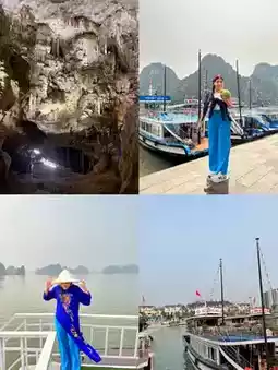 Day 4: Another cruise. Anyone who comes to Hanoi must come here. Halong Bay, baby, baby, 5555555555 There are more than 1,900 islands that have been declared a UNESCO World Heritage Site. People like to see the stone statues in the middle of the water. 2 chickens looking at each other. 😅 When we sailed, we stopped by the Heaven Cave. It was beautiful as the name suggests. The stalactites and stalagmites were very beautiful. When we finished, we went to the shore and rushed to the airport to fly back to Thailand. The trip was over. It was a very short trip, but it was a great escape from the heat in Thailand. 🎟️ The total cost of the trip was about 20,000฿ (We went during a long holiday, so everything was expensive. If you go during the weekdays, it's 40% cheaper) P.S. The price does not include shopping. 💸 Vietnam's currency is "Dong" + Some tourist attractions in Vietnam accept Thai baht. So cool.