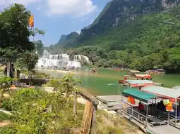 Maybe because it's the rainy season, the water falling from the waterfall is spectacular. There is an entrance fee, and you can take a boat to the waterfall, which is 50,000 VND per person! If you want to take a boat with only your group, it's 100,000 VND per person🩷 I heard that you have to arrive between 11:00 and 12:00 AM to see the waterfall's water volume! Most travelers to Ha Giang Loop only go to Meo Bac, but I recommend you go here via Cao Bang :)
