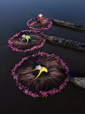 Vietnam truly deserves to be called the pinnacle of human aerial photography, with numerous photogenic agricultural, fishing, and handicraft activities across the country. Because so many photographers capture these subjects, and many win awards with these themes, it has led to many staged scenes (as I've noted in parentheses). Local farmers clearly understand what photographers want to capture, performing standard actions with practiced fluidity... If you plan to photograph there, consider how to design new approaches to create fresh perspectives.