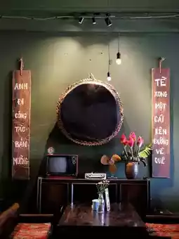 Cộng Cà Phê is inspired by Vietnam’s post-war subsidy period ("bao cấp" era). Its signature green military tones, vintage metal mugs, old thermos flasks, and retro-style furniture evoke a sense of nostalgia and cultural identity. The design blends old-school Vietnamese aesthetics with a cozy, creative atmosphere.#coffee
