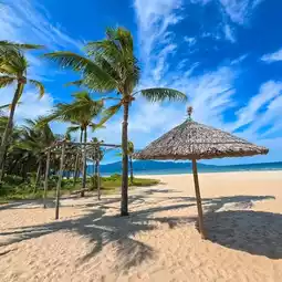My Khe Beach is a renowned coastal destination in Da Nang, Vietnam, celebrated for its pristine white sands, clear waters, and gentle waves. Just 5 kilometers from the city center, it's easily accessible by taxi, motorbike, or even a leisurely bicycle ride.