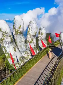 📍 Ba Na Hills & Golden Bridge – walk among the clouds on the world-famous bridge held by giant hands ☁️🌉