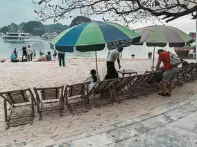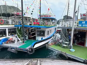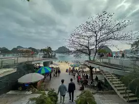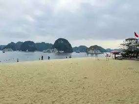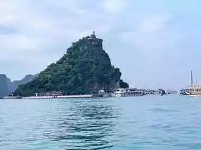 Ti-Top Island, a must-see attraction in Halong Bay, offers a beach for water play and a 411-step observation deck. Along the way, you'll see statues commemorating Soviet cosmonauts. A 15-minute climb to the summit offers breathtaking 270-degree panoramic views of Halong Bay. Coconuts, ice cream, and small souvenirs are sold on the island, making a coconut a great way to cool down in the summer. Both day and overnight cruises include a visit to Ti-Top Island, making it a great spot for all ages to take in the photos!