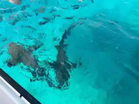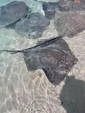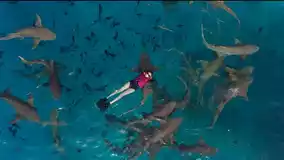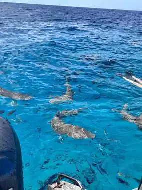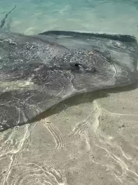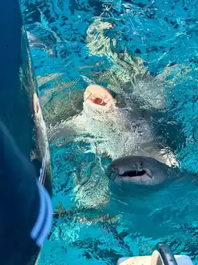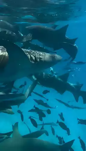 A swim in the shark pool - a strong fishy smell. When swimming on your back, the sharks will touch your body. Their skin is very smooth. Their tails will suddenly hit you hahahahaha