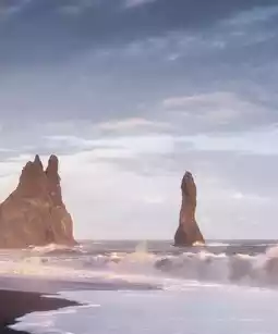 ◦ Low angle: Crouch on the sand with waves in the foreground to capture the full view of basalt columns, emphasizing the "giant organ pipes" sense of scale;