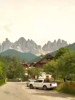 When you leave the village, you will see the view of the church hidden in the valley with the large mountains as a backdrop. It is very beautiful.