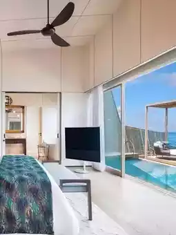 Villas all come with a swimming pool and terrace, where you can lie in bed and enjoy the view of the Indian Ocean.