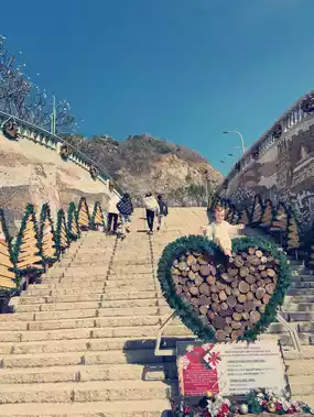 The continuous effort will be rewarded by beautiful landscapes of mountains, natural scenery such as blue sea & trees once we go up to the top of sculptures on a 10-meter-high concrete pedestal.