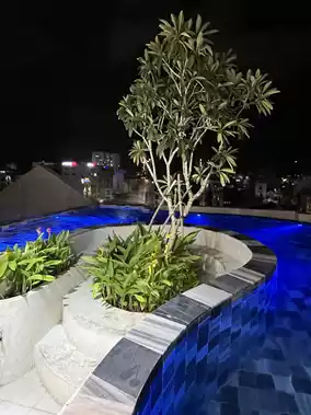 and a cool and fluffy bed, and a clean swimming pool,
