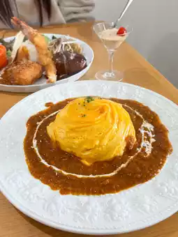 The omelet curry rice was mildly spicy, easy to eat, and delicious.