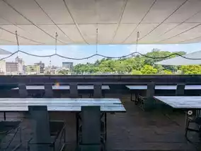 The café attached to the Wakayama Prefectural Museum of Art is located on the terrace on the second floor. It is decorated with books and wooden furniture, and the atmosphere of the outdoor terrace is very chill. You can directly overlook Wakayama Castle and enjoy the changing scenery of Wakayama Castle in the four seasons. It is quite comfortable.