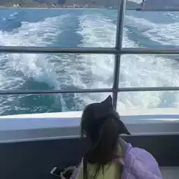 I don't think the boat is strong enough to make you seasick, but if you're worried, don't forget to bring medicine for seasickness. There are also vending machines and a small cafe on the island, but there is also a shop just before boarding the boat, so you can rest assured.
