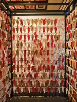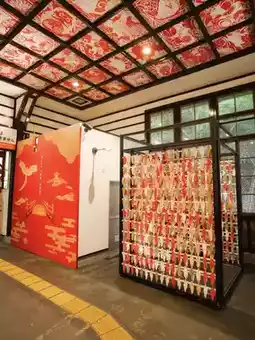 The one over there When you go to the platform, there are ceiling paintings with a red base, and since there was a custom of decorating paper cutouts called "Hourai" in Koyasan, the ceiling paintings are decorated with various lucky objects such as birds of paradise and the zodiac animals with this Hourai as a motif 🖼️