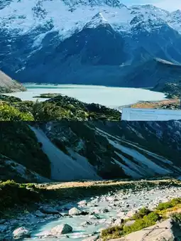 On the second day, we headed to Mount Cook. The emerald waves of Lake Pukaki and the snowy mountains created breathtaking views throughout the drive. Walking the Hooker Valley Track, crossing suspension bridges, and witnessing the glacier-carved valleys and lakes up close were the highlights of the New Zealand trip. Sipping coffee at Mount Cook Village while gazing at the snowy peaks through the window was a special moment of relaxation.
