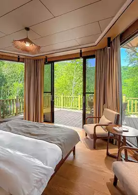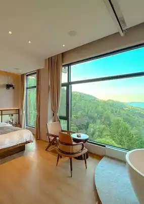The sunrise-view room is truly the prime spot! At 5 AM, we greeted the dawn from the viewing deck as the sun slowly rose over the ridges, painting the entire sky in tangerine hues. In that moment, all worries dissolved into pure harmony with nature.🌅