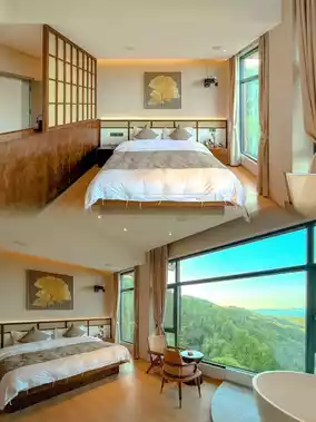 - Design: Inspired by "ginkgo hues"🍂, blending minimalism with local rammed-earth craftsmanship🧱. All rooms feature underfloor heating🔥, smart controls📱, and scenic balconies🌼, creating a secluded yet luxurious mountain retreat🏡.
