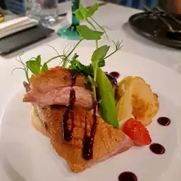 The duck breast is tender and fragrant, with a very tender texture, served with blueberry red wine vinegar sauce, making the flavor stand out.