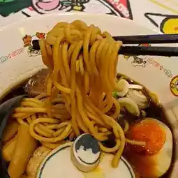 The black soy sauce broth is flavorful, and the ramen is chewy and springy. Topped with tender char siu and fresh green onions, it is savory and smooth.