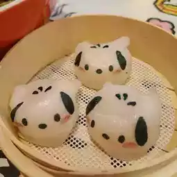 The shrimp dumplings also feature a PC Dog design. Each bite-sized piece has a thin skin and crispy shrimp filling.