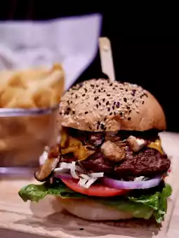 At first I was a bit scared to see such a big burger, its beef is bitten into a grain of gluten, super mouth-watering! Served with mushrooms and cheese🤤🤤 delicious!