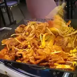 I ordered spicy stir-fried pork belly with bean sprouts, octopus and garlic. Bean sprouts are a watery and light-flavored ingredient, so they go perfectly with the rich seasoning.