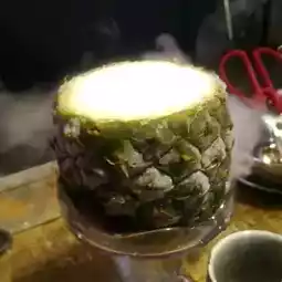 Pineapple smoothie, with dry ice to create the white smoke effect, wow! sober sweet and refreshing