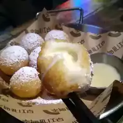 Frosted cheese pops, like the glutinous rice pops we eat at night markets, have cheese sauce in the center and are sprinkled with icing sugar. The sweet and salty combination is very delicious.