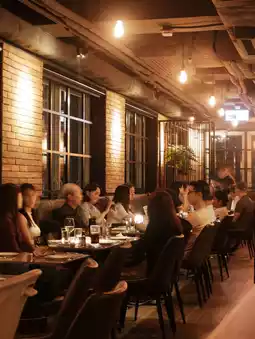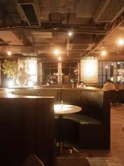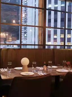 🏠Environment: Located on a high floor, the restaurant offers a panoramic view of the bustling city lights through a row of wooden-framed windows paired with red brick walls and leather sofas, creating a European bar atmosphere. Near the entrance is a spacious semi-circular booth, offering a degree of privacy, perfect for dates with lovers or friends.