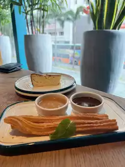 🍰 The cheesecake is fragrant and soft enough, the churros is crispy enough, and the chocolate sauce is simply my favorite🥰