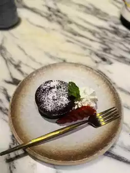 Several people share a piece of cake is not enough 🤣, in addition to order more dessert share😈. The chocolate melted cake is hot🔥, the chocolate sauce flows out the moment it is cut🤤 It's so good.